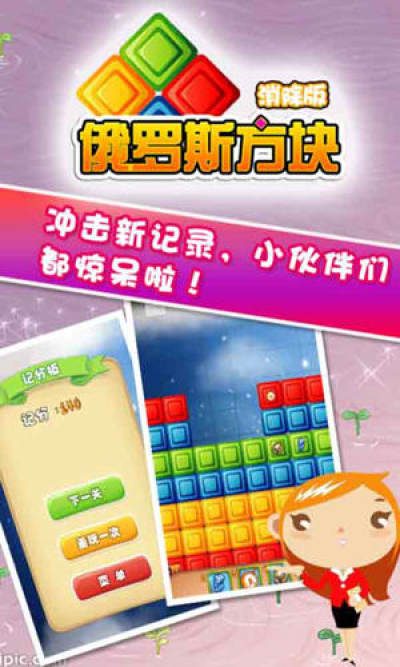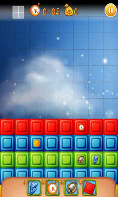 注意如果有方块被留下来蔓延到屏幕上方,那么游戏就失败了,每一个关卡有一个目标,完成目标就可以过关,还可以使用道具辅助过关,比如,“炸弹:可以消除九宫格区域方块”,“闪电链:可以消除一行方块”,还有增加时间道具等。