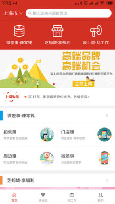 “爱上岗”是由爱尚岗网络科技(上海)有限公司创立,基于人力众包模式,提供招聘、培训、品牌专区、芝蚂城等业务综合服务的B2C平台。