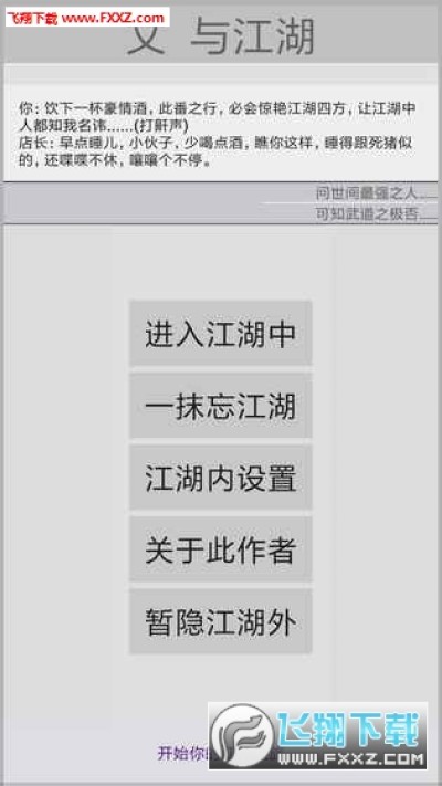 文与江湖手游是一款一武侠为特色的文字类游戏,剑出鞘的那一瞬间,早已尘埃落定。各大高手等你来战!这是一款文字游戏,这是你记忆里的江湖!在江湖中武侠总是占有最重要的位置,有多少武侠英雄为人民造福,在这款游戏中你可以开启属于自己的武侠世界,在跳跃的文字中,你才是书写武侠故事的道中人,一起来下载试试看吧。