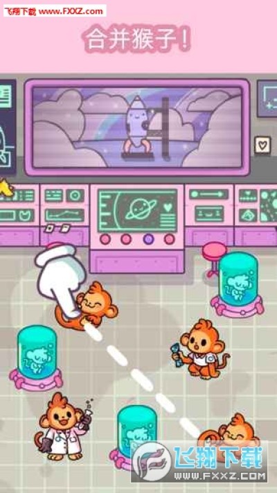 玩家可以合成各种各样的可爱猴子,如好奇的乔、达尔文等等,而且猴子可以产生收益,让你能够升级科技水平,促进探索宇宙计划的发展!