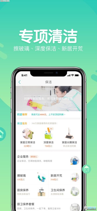 阿姨帮app是一款非常好用的家政服务平台,这款软件也是为用户提供的全面的家政服务,在阿姨帮app上用户可以直接找到自己想要的服务,保洁、家政清洗、维修等等都能找到专业的人士,需要的用户快来下载吧!
