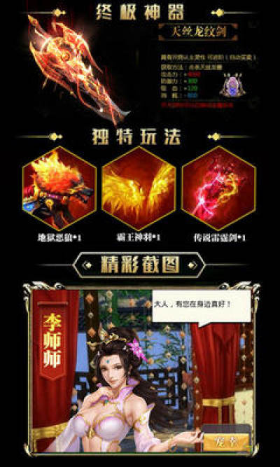2.新玩家上线即送56888元宝,888万银两,海量奖励根本不玩虚的,助您在游戏起步腾飞。