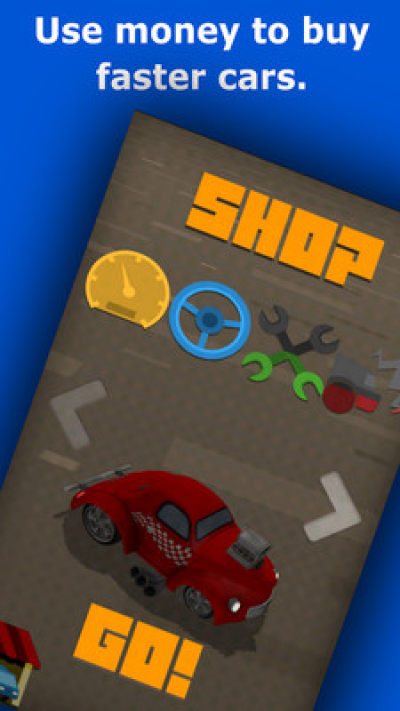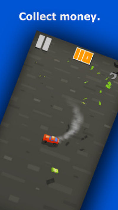 一款卡通画风的赛车游戏,严格意义上来说不算赛车,因为并没有模拟刹车加速方向盘等标准赛车游戏操作,而是以俯视视角操控汽车的飞速前行,各种急转弯和行车路线才是玩点。