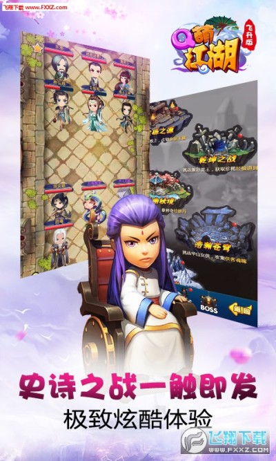 Q萌江湖是一款模拟武林纷争战斗故事的别样武侠对战类的游戏,诸多的武林豪侠,或者俊美的,或者柔情的,或者勇猛的,都将收归你的门派,学习盖世武功,修炼奇门阵法,一步步成为武林霸主。