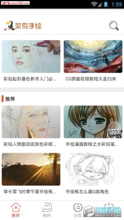 菜鸟手绘app是一款手机绘画软件,这款软件为用户提供了插画、绘画等教程,有多种绘画的风格和类型,在这里用户可以享受到专业的讲解,以及学会辨别各种材料,为绘画爱好者提供了一个专业的平台,需要的朋友赶紧下载吧。