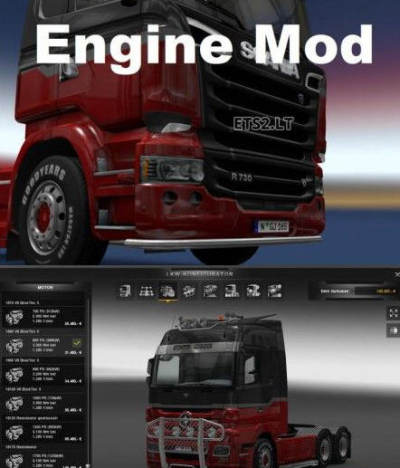 这是欧洲卡车模拟2的一个MOD,改进了新的引擎,对所有卡车均适用(Volvo Fh 16 2012除外),发动机有700-1700的HP,同时还增大了发动机的声音。