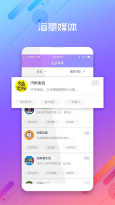了解媒体发布内容及传播数据:网罗各界意见领袖,为品牌宣传助力。汇聚本地知名媒体,提供全频道传播平台。旅游、房产、母婴、民生、体育等众多知名媒体为您提供多渠道、全平台的传播通路。