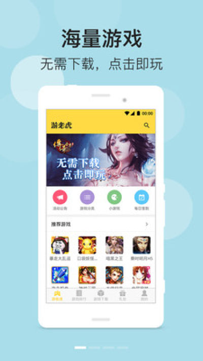 《游老虎游戏盒》app是集游戏在线玩、游戏资讯、游戏礼包于一体的手游平台,打造游戏最全最新的试玩体验,而且游戏过程中不会出现断网或者卡顿等情况,非常不错!感兴趣的话就赶紧下载体验吧!