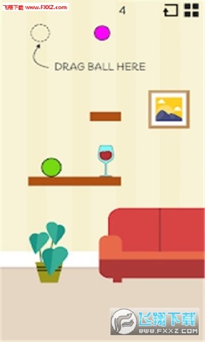 1、简约自然的画面设计,玩家需要利用一定的物理知识,才能利用小球让水杯的水都洒出来,进行自然闯关。