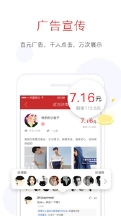 红图一款红包信息交互App,以红包为载体,快速、高效及准确的传递信息!无需添加好友就能发布信息,操作简单,准确投放。以红包为载体,进行信息传递与互动。每条信息内容都是以红包的形式进行传递,用户在抢红包的同时,便浏览了红包信息所包含的内容,并可以在内容下方进行评论、点赞、转发等互动操作。针对小商家是一个信息发布工具,针对普通用户是1公里朋友圈