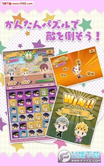 将Jojo系列的角色Q版化,收集Q版人物,简单快捷打败敌人的消除游戏!