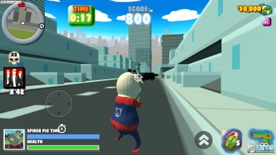 一款都市动作射击游戏,你身为一只不一样的猪,拥有着超凡的战斗力,你可以选择成为城市的守护神还是破坏神,不一样的选择面对的也会是不一样的局面,使用你的武器,将出现在你面前的所有敌人全部消灭,不用担心你的武器,手枪,火箭炮,炸弹什么的都有,尽情的享受着刺激的游戏吧。
