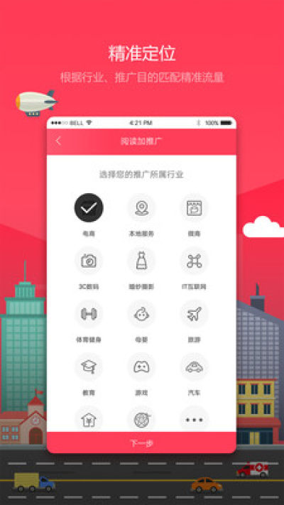2、专属方案:选择所属行业、推广目的、投放预算,免费获取专属营销方案