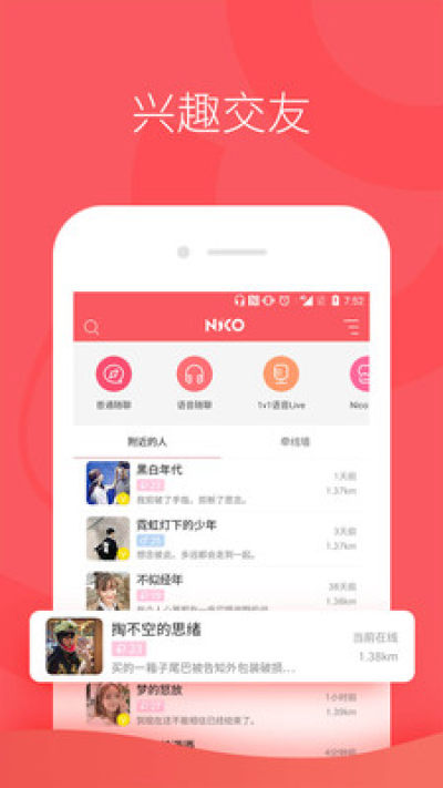 1.交友(附近的人、随聊、1对1聊天、牵线、匹配CP)