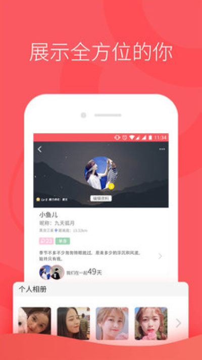 你可以随时找到聊天的朋友,筛选标签,性别,一起开启话痨模式;发现周围还有那些人,你们拥有共同的爱好;系统筛选当前在线,并有可能让你感兴趣的用户;展示你和另一半的CP主页。