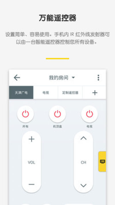 《必控万能遥控器》app是一款可以控制任何智能家电的手机软件,集操作系统、媒体资讯、智能提醒等功能,相比以往手机遥控器功能更强大和智能化,它可以帮助用户生活更加方便快捷!