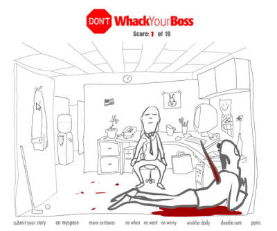 《别打你的老板》是一款发泄小游戏,BOSS来到你面前,你可以选择周围的道具将其残忍杀死。显示器、雨伞、门板、水桶都可以成为作案工具。游戏没有剧情故事,一开始就直接进入主题。游戏比较暴力,不适合小孩子玩。