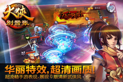 4、纳米级安装包。随着大量端游研发厂商进入手游市场,手游产品的画面和品质提升的非常快。这就对产品的表现力与资源量、稳定性之间的平衡提出了更高的要求。《大侠别嚣张》继承自《桃花源记》独创的图片压缩技术,在保证高画质的同时,带来更高压缩率,以求用最小的资源量实现最炫的动态效果。