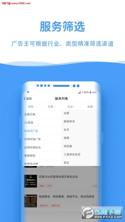 1.以CPD、CPT为主要形式的主流应用市场广告对接;