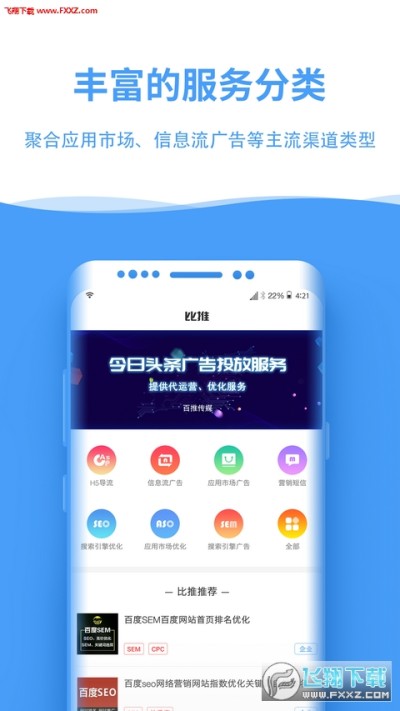 比推APP是一个靠谱的商务、运营、推广助手,致力于为互联网公司商务运营人员提供合作渠道查找、推荐、对接服务。通过比推APP,可完成三种运营渠道的对接: