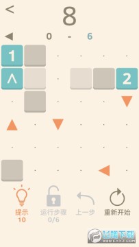 每一个关卡都具有最少步骤的解法,预设是被锁住的,如果实在是没办法过关时,可花费一个提示点数以解锁下一个步骤。