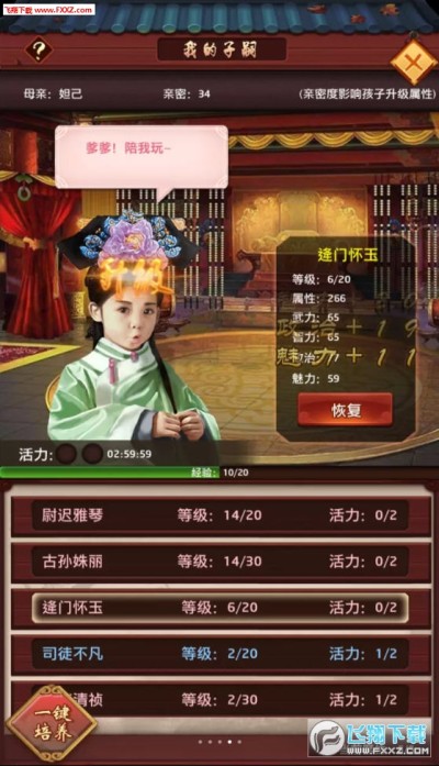 味美绝伦的美术风格,燕瘦环肥各色美人任君选择,娶妻纳妾,生儿育女,必能成为人中龙凤多种升级方式可以让你提升门客属性