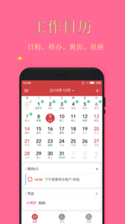 这是一款小巧易用的日历应用,有多项贴心的实用功能,可查看日历,当日的运势,看星座。还可进行天气的查看。待办事项的记录与提醒。一个云日历应用,全部都可为你搞定。快下载体验吧。