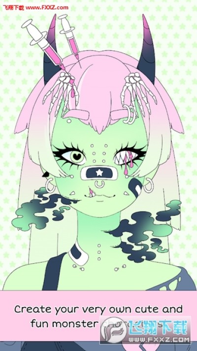 本游戏搭载了许多不同的怪物装饰,肤色,发色,眼睛,衣服都可以随意改变颜色