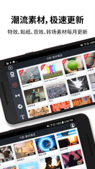 特效、贴纸、音效、转场素材每月更新,更有iKON、BIGBANG、SECHSKIES、会说话的汤姆猫家族、B.Duck小黄鸭、蛋黄哥官方授权视频素材!