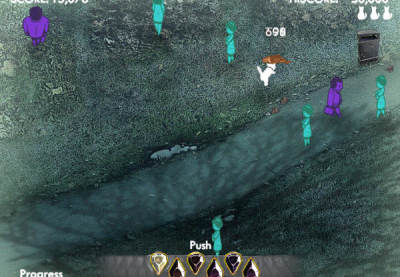 鼠标点击白色的小猫开始,滑动鼠标让小猫收集更多的食物,但是随着食物在地上的时间增加,食物的分数也会随之减少,收集食物的同时,一定要躲开幽灵,因为一旦碰到幽灵,小猫就会呜呼哀哉。同时玩家也可以收集“法器”驱散幽灵。