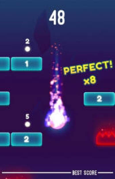 2、小球下落的特效炫丽多彩,长长的尾炎给你视觉上最逼真的下坠反馈;