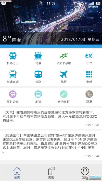 上海交通手机客户端,是一款为市民出行提供综合交通信息服务的软件,该款软件集成了市内公共交通、道路交通和对外交通等信息。