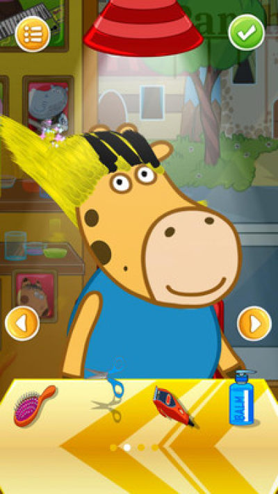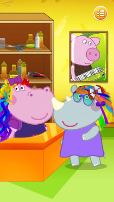河马佩奇美发沙龙店已经开张啦,现在有3位顾客来到你的店里了,快来帮它们好好的做个漂亮的发型吧,最后再帮它们打扮一番吧!