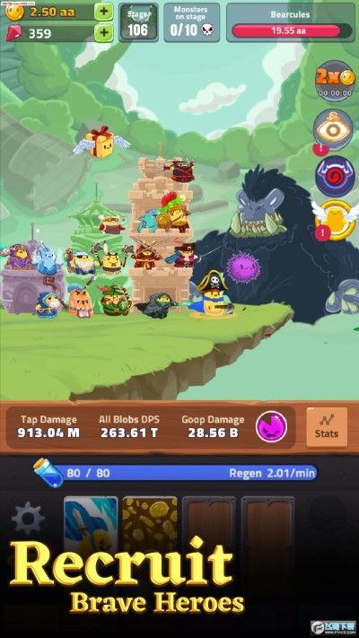 点击攻击怪物和招募斑点英雄,收集黄金,并点击你的方式成为最强大的一团。这些家伙逃出了山洞,帮助他们赢回Blob镇!