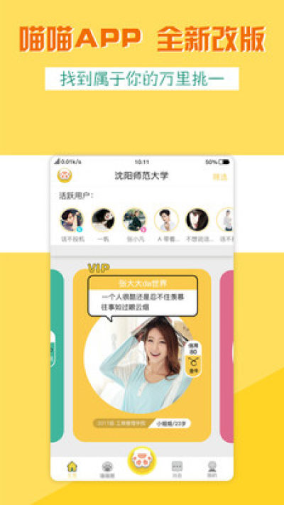 《喵喵》app开创国内首款相遇实时提醒的社交平台,打造不一样的超火爆校园社交产品,让用户不在错失一份难得的擦肩而过,助你和有缘的路人搭线;感兴趣的话就赶紧下载体验吧!