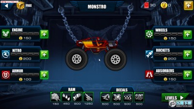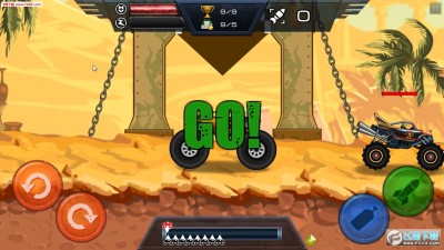 把油门踩到底并通过各个疯狂的关卡。为卡车加装氮气加速装置和导弹发射器,并收集增强道具,从而一步一步地登上排行榜前列。收集金币,为卡车购买拉风的车贴、酷炫的喷绘以及狂野的装饰品进行装饰,从而在对手心中植入恐惧的种子。