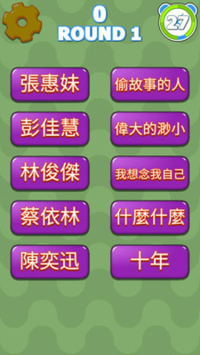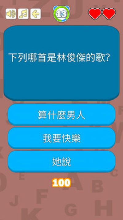 这游戏的玩法很简单,玩家能在主菜单中选择喜爱的歌曲语言,而游戏中会给予歌名,歌手和部分歌词作为提示,而玩家需要根据线索,在限时内拼出问题所需的完整华语,广东歌或英语歌词。