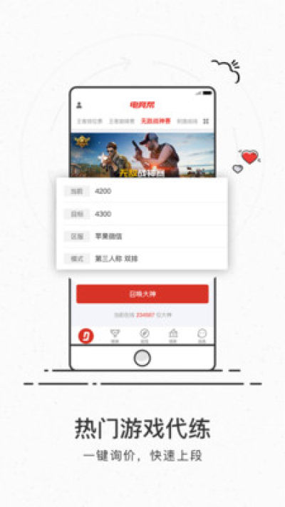 电竞帮游戏代练陪玩平台,集王者荣耀、吃鸡手游等多款游戏于一体。