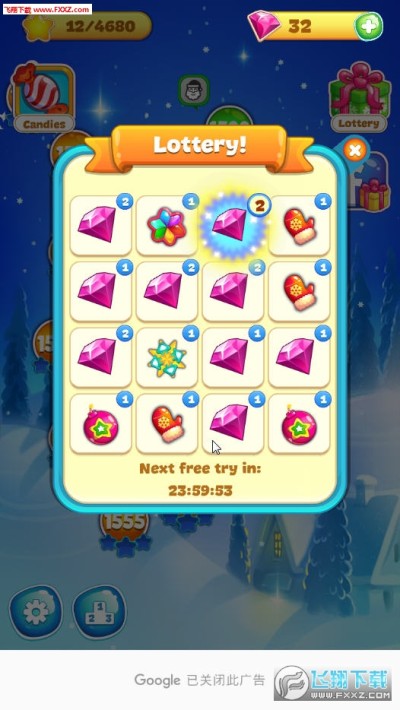 进行4或5的比赛以制造强大的炸弹和能量提升。并使用圣诞老人的手套收集一件。你将获得饼干和苏打水奖励。