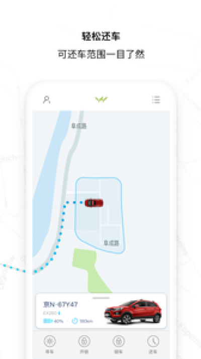 2、预订用车,十五分钟车辆预留,精准导航找车;