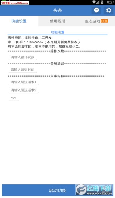 脚本apk:头条自动点赞关注私信,安装打开软件即可使用!操作非常简单