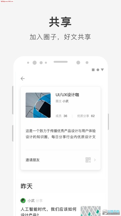 在圈子中,成员可以共享收藏的优质文章