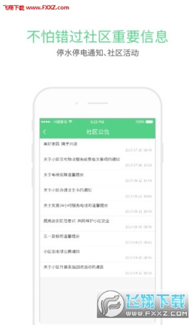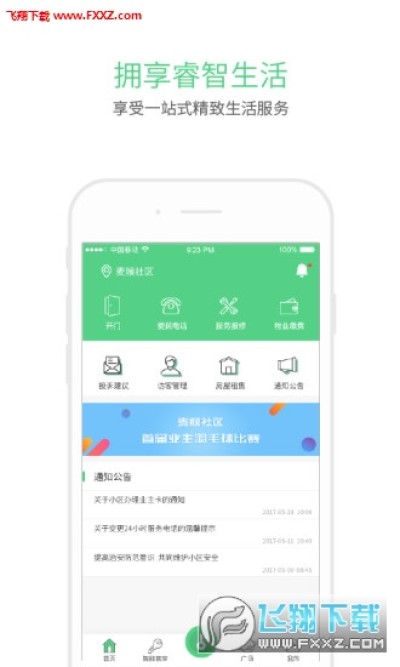 通知公告:紧急物业通知、活动等实时推送;