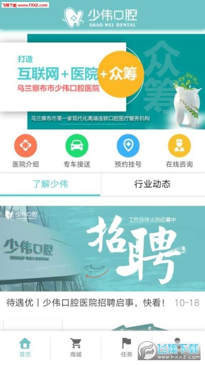 平台提供在线挂号,家庭医生,积分商城,专车接送等服务,还可以加入我们,成为少伟口腔医院的股东。
