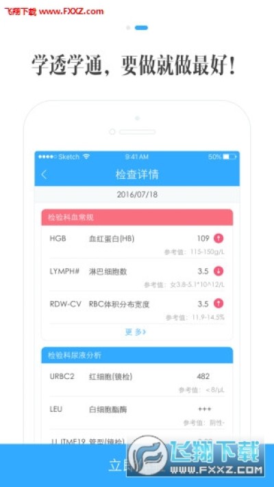 2、化验查询:可查询患者在院内全部化验数据结果值,可提示化验异常项;