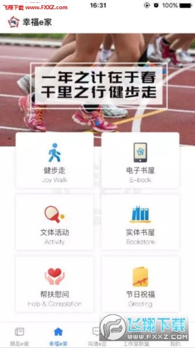 员工组织文体活动、进行互动交流的园地。包含健步走、电子书屋、文体活动、实体书屋、帮扶慰问、节日祝福等版块。