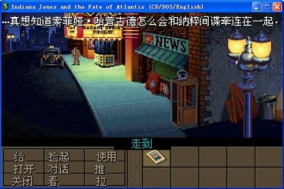 运行说明:点击“Add Game...”;点击“Choose”;选择“Indiana Jones And The Fate Of Atlantis(Chinese(China))”点击“Choose”;点击“Audio”勾选“Override global audio settings”;选择“Both”点击“OK”;点击“Start”开始游戏(以后可以点“Load”选择存档开始)。