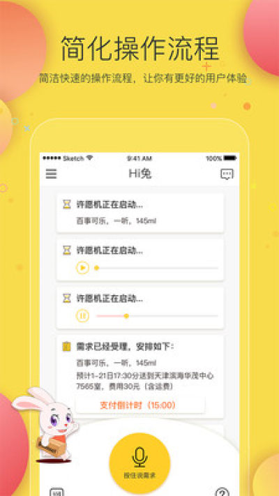 《Hi兔》app打造智能生活上的购物许愿机,专注生活服务类应用,开创便捷和舒适的购物理念,用户一键语音即可快速匹配到所需商品服务,非常高端智能化;需要的话就赶紧下载体验吧!