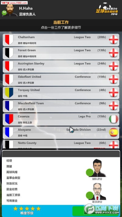 在游戏中你将不仅仅只是一名足球经理,你将会担任足球总监,管理一个已成立的足球俱乐部的日常运作,你甚至能够自己创建一个足球俱乐部。