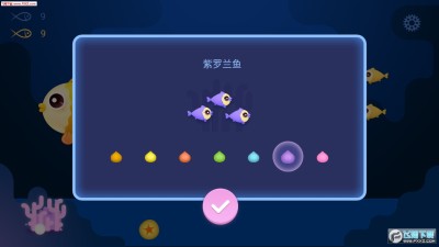 这是一个适合儿童的游戏,画面精美,简单,点击空白处喂鱼,就会产卵,卵会孵出小鱼,点击小鱼鱼儿会游走。为什么颜色的食物就生出什么颜色的小鱼,可以帮助孩子们认识颜色。简单无害。